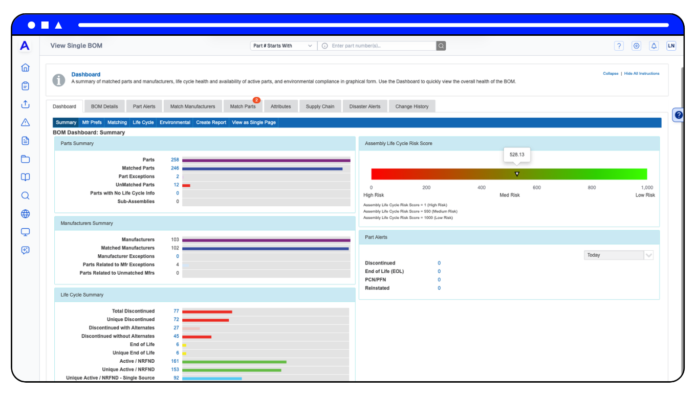 BOMからサプライヤー、拠点、コンプライアンス状況、グローバルなリスクエクスポージャーに至るまで、サプライチェーンの全体像を包括的かつ連携して把握し、推測ではなく事実に基づいて行動しましょう。